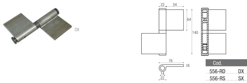 Adjustable hinges for armored doors, Italian production Brevetti Adem, right version (code 556-RD) or left version (code 556-RS).