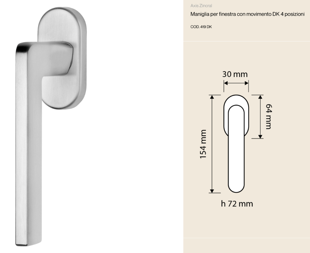 Axis Zincral Linea Calì window handle is the emblem of elegant simplicity, where every detail has a precise function and no element is superfluous.