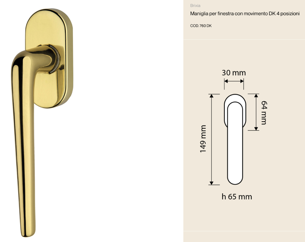 Brixia Linea Calì - Brass Window Handle - Italian Quality