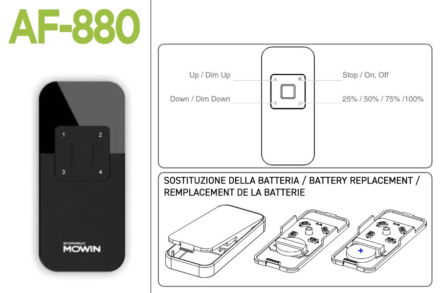Comunello AF 880 – 1 Channel Remote Control for Actuators – 433.92 MHz Rolling Code