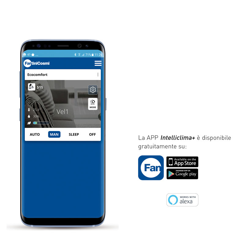 Management from smartphone and tablet via Intelliclima+ APP ;