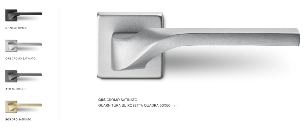 50x50 mm square rosette integrates naturally into the contemporary style, giving a distinctive touch to your interior doors.
