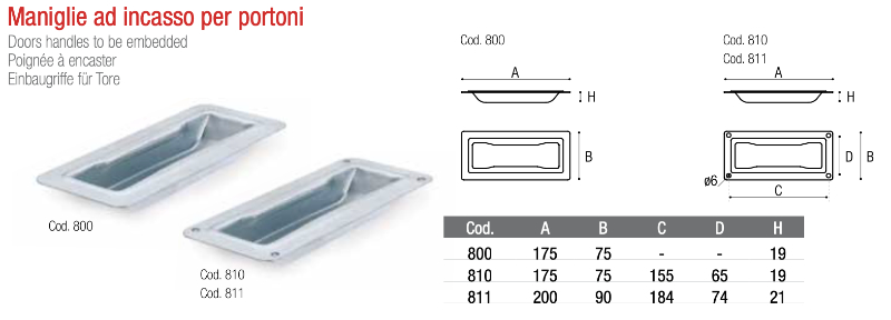 Recessed Handle for Industrial Door - Adem Codes 800 810 811