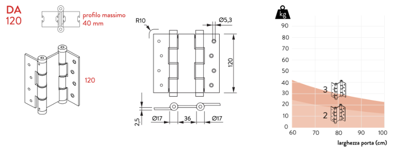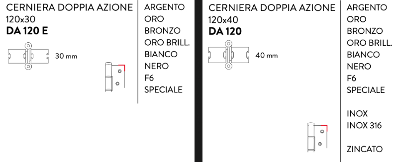 Justor DA 120 double action hinge designed for traditional fixing with screws and for assembly by welding in the frame and door.