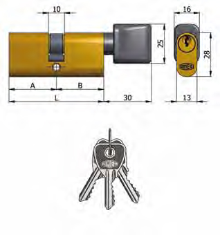 Double Cylinder Omec with Knob Brass Oval 5 Pins 60mm L 27/33
