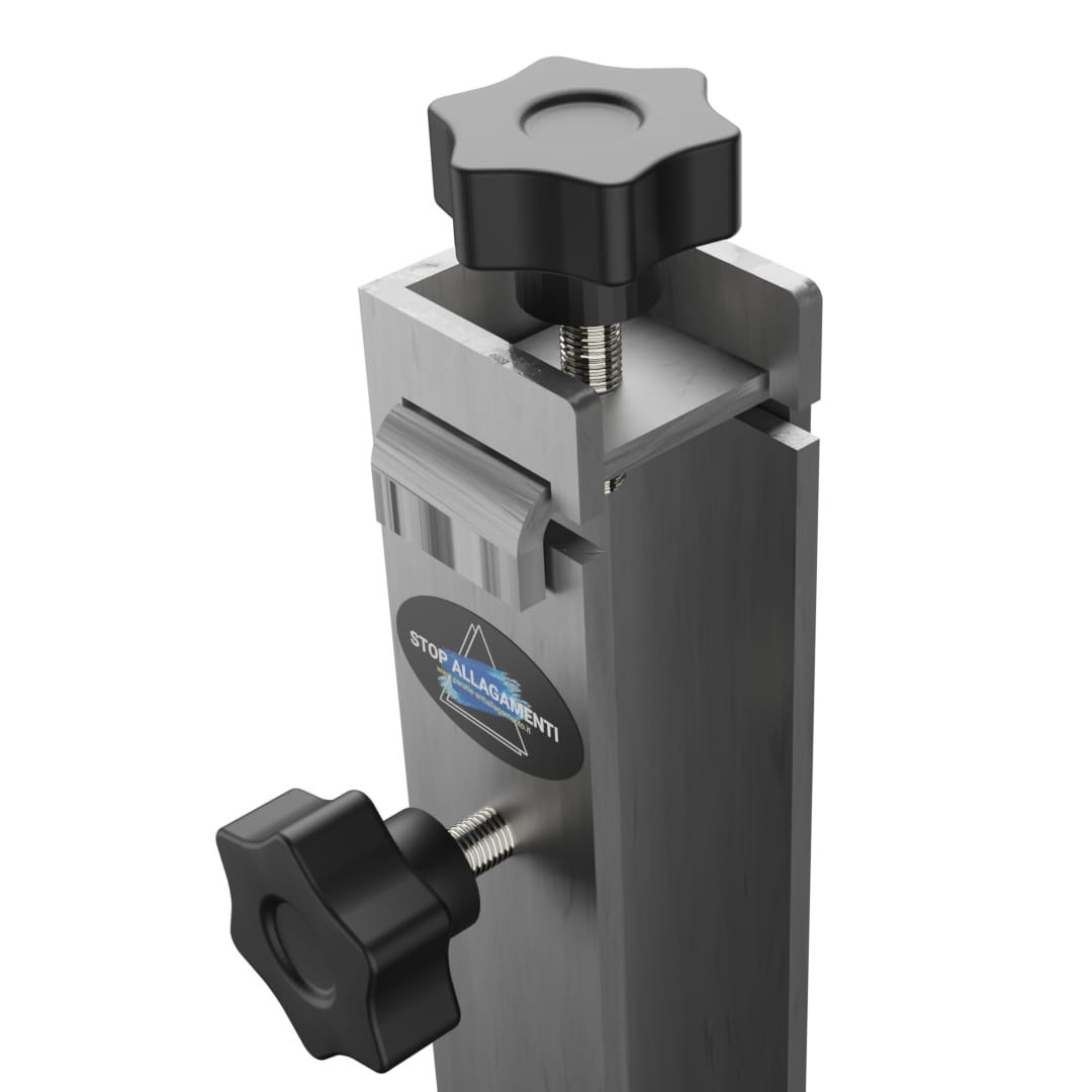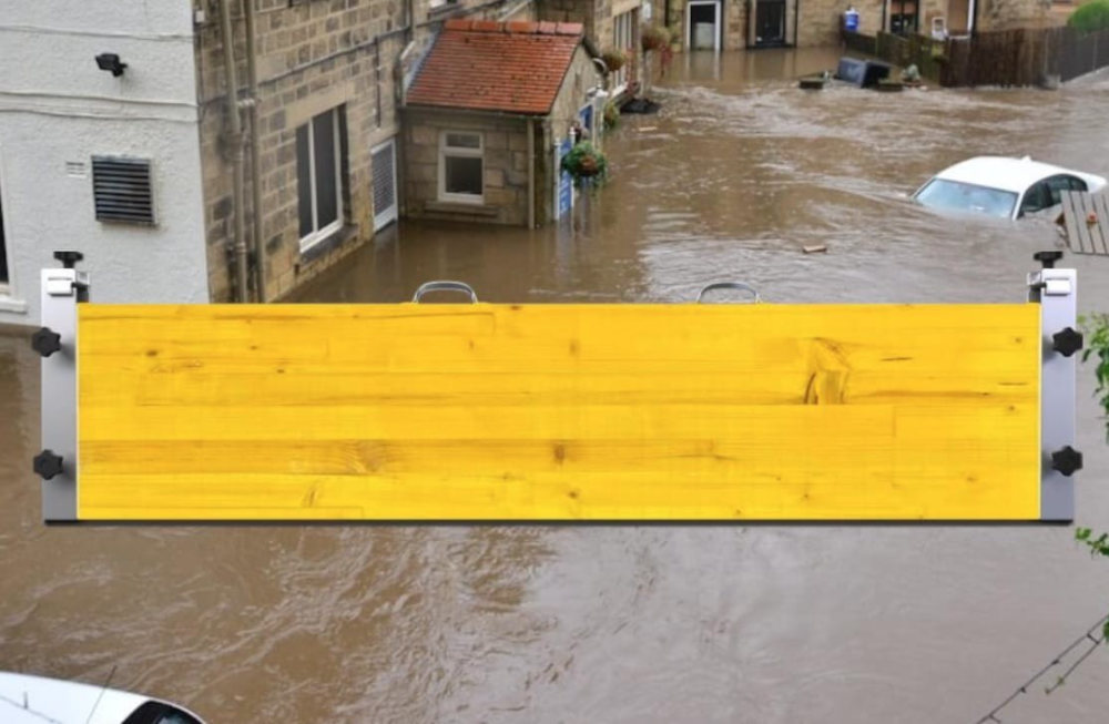 The wood and aluminum flood barrier is a practical solution for protecting entrances from water and flooding.