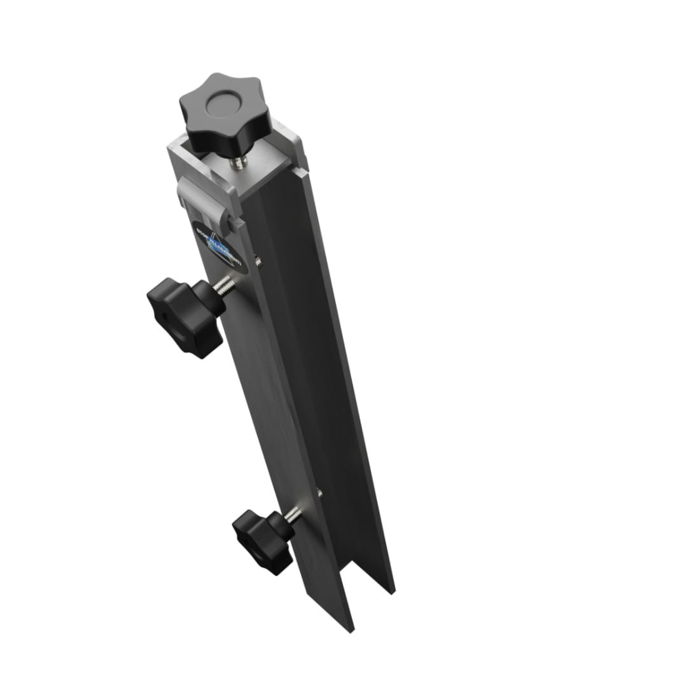 The system uses steel side brackets with vertical pressure and a durable engineered wood board, creating a stable barrier that can be adapted to various openings. The brackets are attached to the sides of the opening. When needed, the board is inserted and locked in place with vertical pressure.