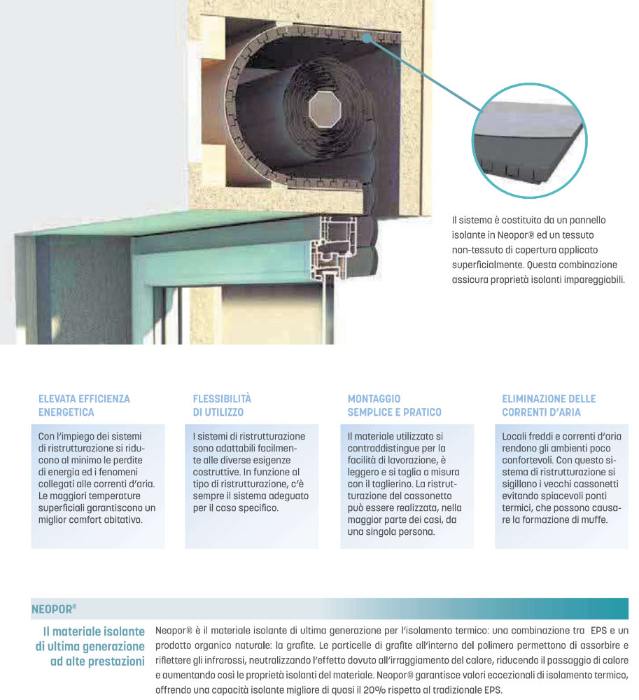 insulating panels in Neopor®, a latest-generation insulating material with high thermal performance.
