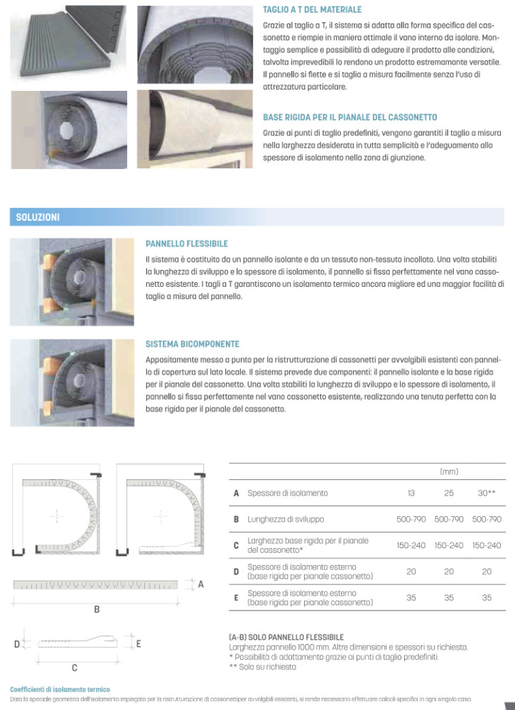 flexible structure and T-cuts, the panel easily adapts to the internal shape of the box, ensuring simple installation and optimal insulation even in irregular situations.