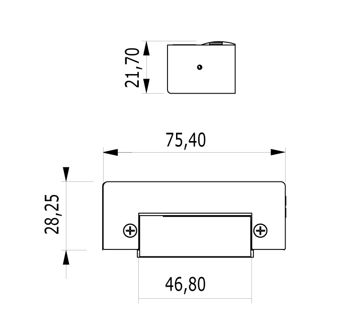 Dimensions: (Length x Width x Depth) 75.40 x 21.7 x 28.25mm.