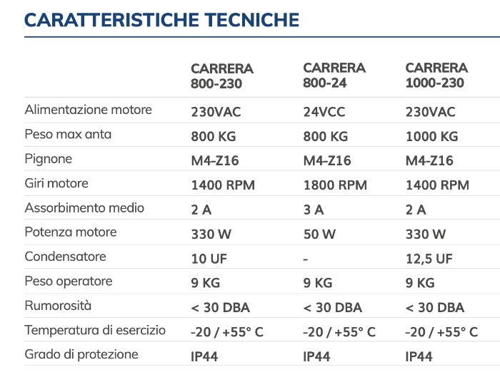- CARRERA 800 230V VDS KIT for gates up to 800 kg;