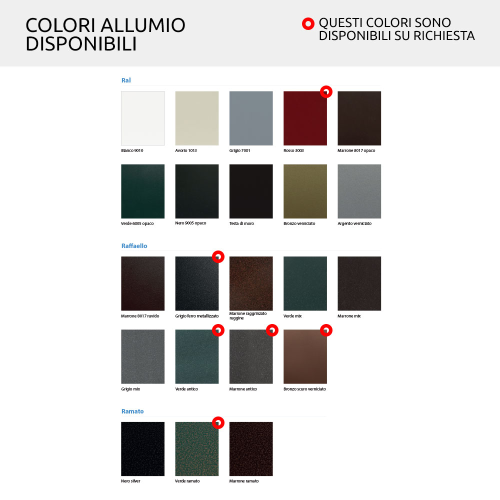 Choose from a wide range of aluminum colors to be able to adapt the product to any environment and need. Some colors are available upon request (contact us).