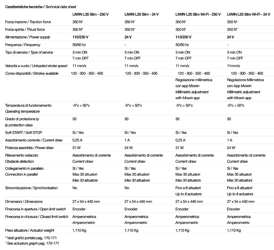 LIWIN L35 Slim Wi-Fi version integrates the new intelligent interconnection technology that allows advanced parameter adjustment, synchronization of multiple actuators and real-time diagnostics via the dedicated Mowin App.