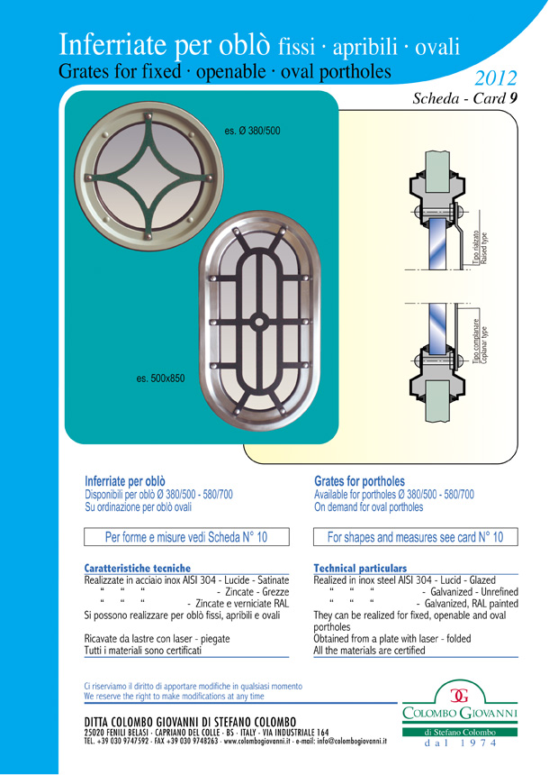 At its plant in Brescia (in Fenili Belasi), the company designs and manufactures products Colombo constantly improving quality. Since the design of these portholes, the goal is to achieve maximum customer satisfaction recependone the precise needs. For this we can guarantee the life and functionality of these magnificent porthole.