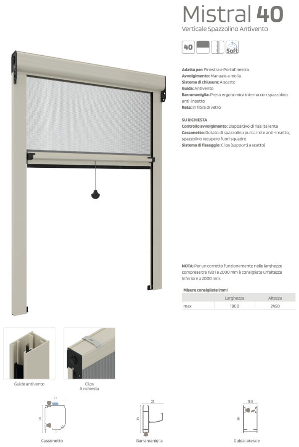 Mistral 40 Officine Rami is a vertical mosquito net with a 40 mm box , designed to offer effective protection from insects, even in the presence of wind.