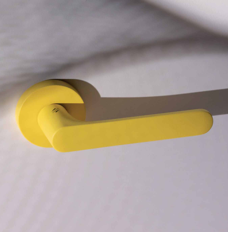 The One Mood door handle by Colombo Design is a contemporary design choice that combines simplicity and color.