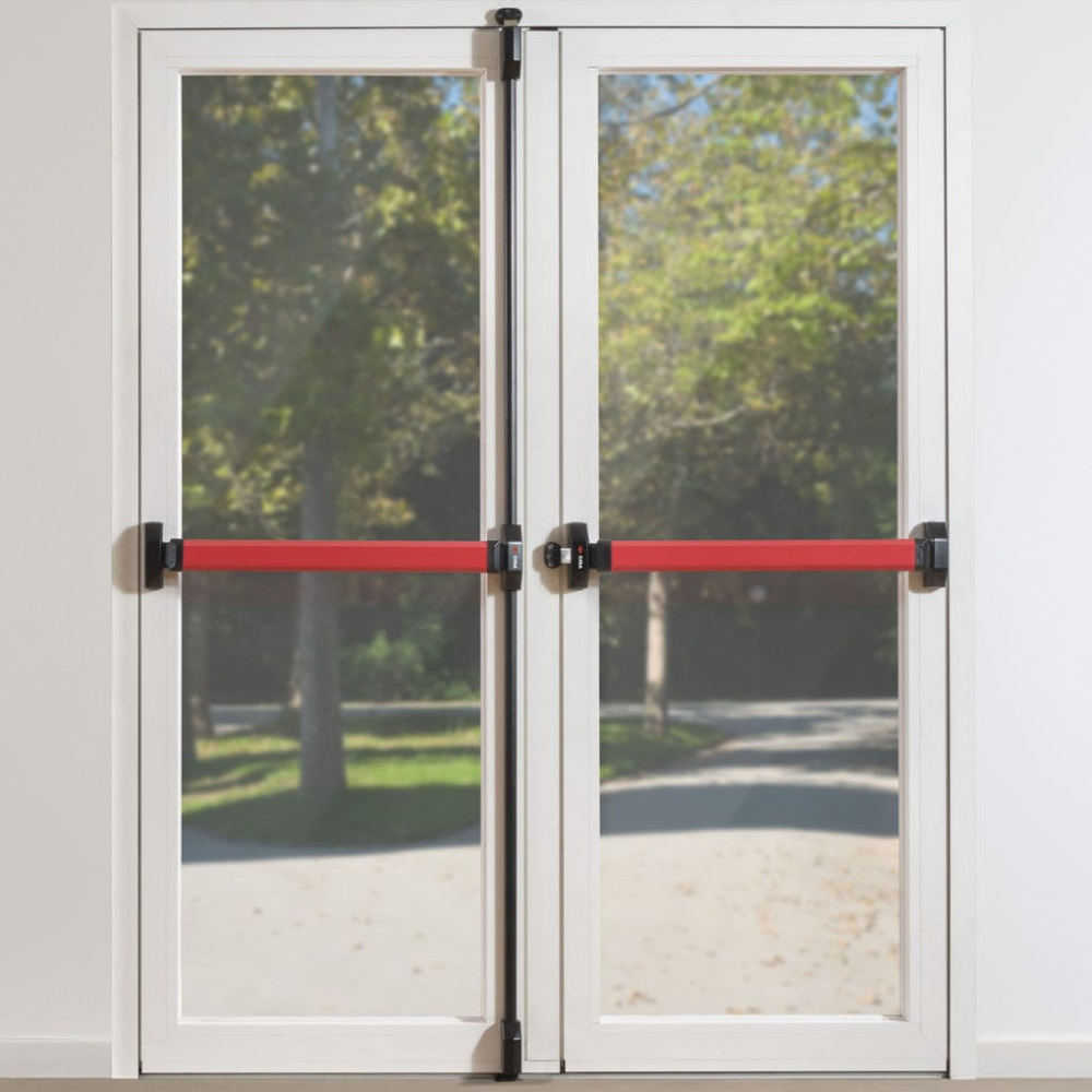 Side : Single point locking, 840mm bar, suitable for standard doors or secondary exits.