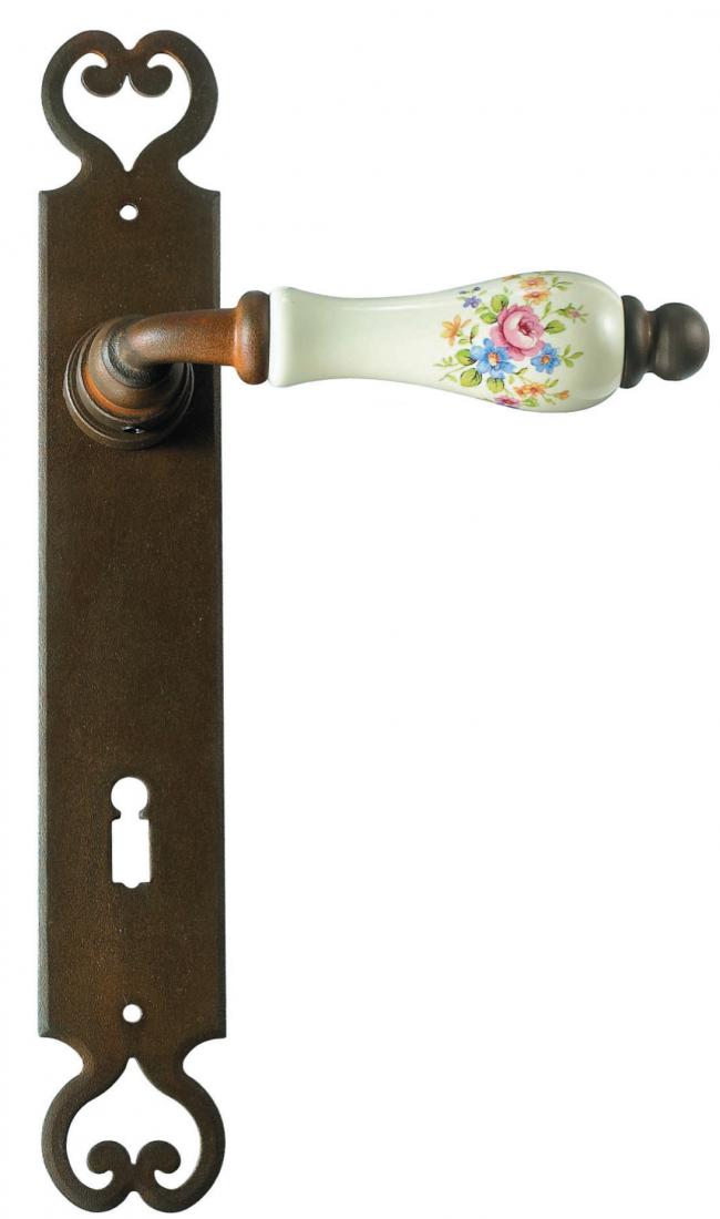 Paris Galbusera 2600 + D22 - Iron and Porcelain Door Handle on Plate