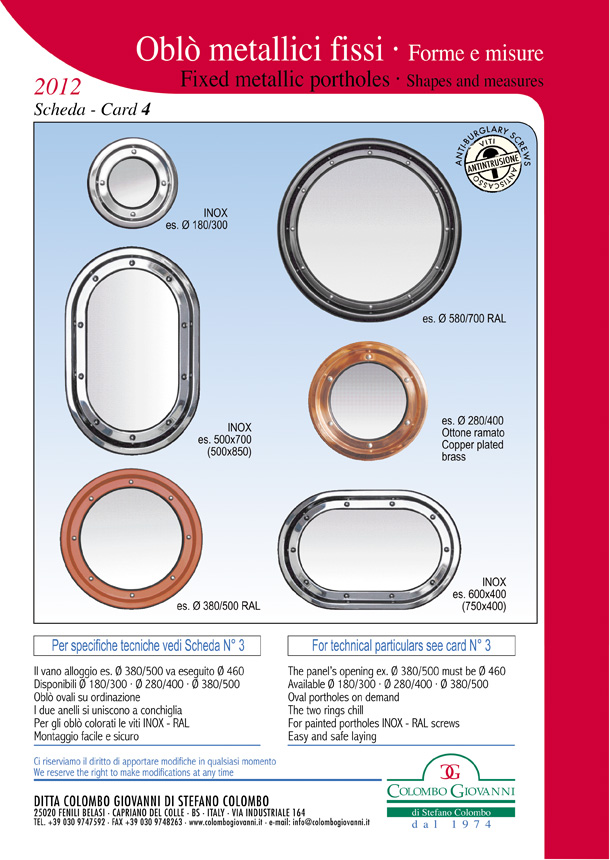 Porthole Fixed Metallic Inox Round Inox AISI 304 Colombo