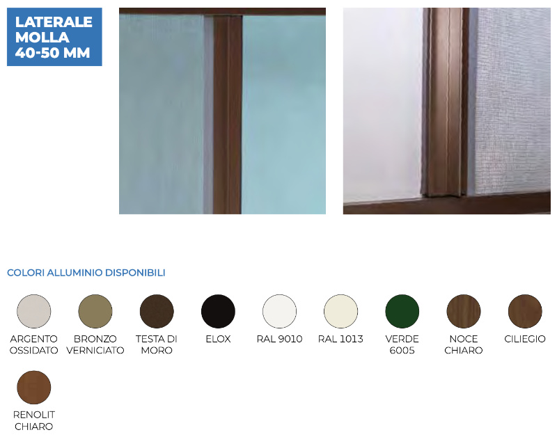The RM Zanzariere mosquito net with lateral spring can be ordered with two types of box, 40 and 50 mm. The mosquito net you purchase in this tab is the