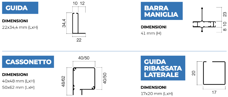 The 40 mm box is recommended only for small spaces (base and height in any case not exceeding 1600 mm).