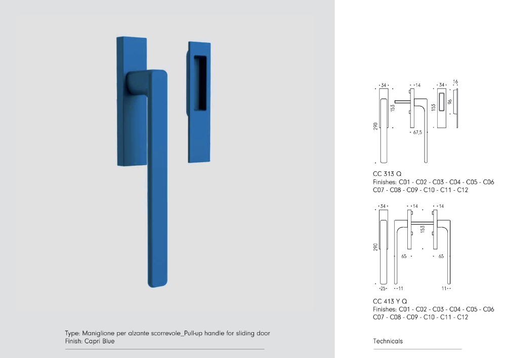 The COLOMBO DESIGN MOOD lift-sliding handle is designed for those who wish to combine functionality, design and colour customisation .