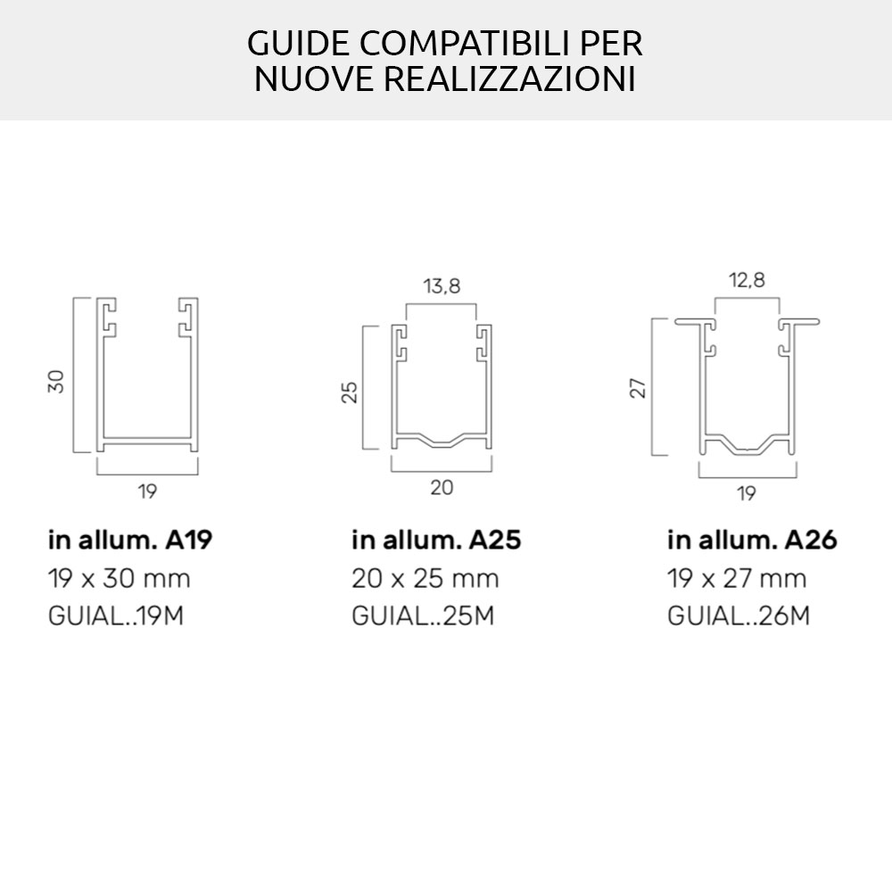 Replacement or new installation of roller shutters and sliding guides: for the width of the roller shutter, with reference to the guides to be used, the necessary tolerances must be taken. You can use the old guides if they are in good condition and if they have at least 16.5mm of usable space inside.